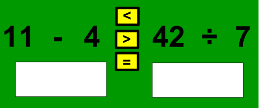 You are given a number sentence with two problems on both sides. You have to solve both sides and then select the appropriate symbol.