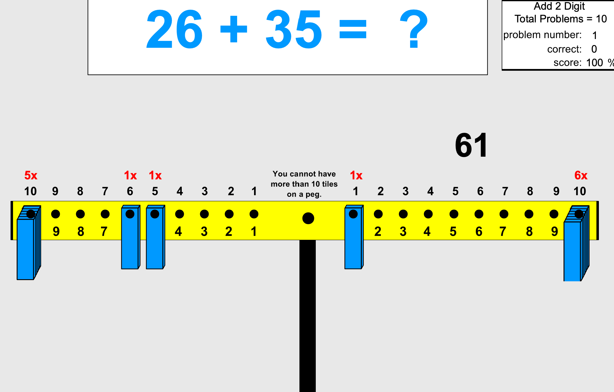 This program uses a math balance to teach important concepts for adding, subtracting, multiplying, and dividing.